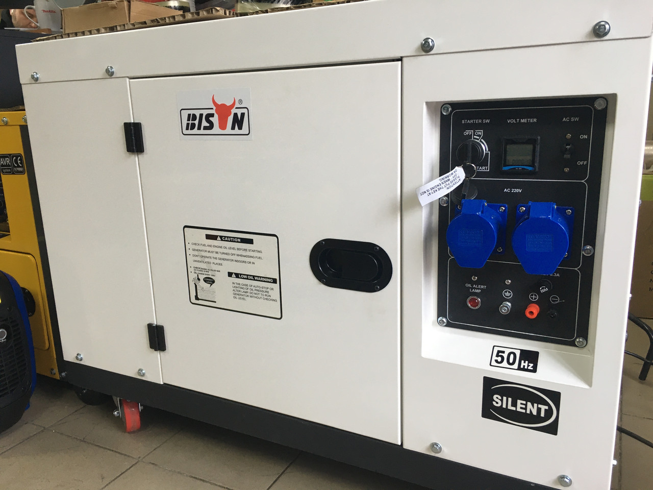 Система запуску двигуна: Безшумний корпус, Електричний стартер, колеса, силова розетка, табло мотогодин, автомат