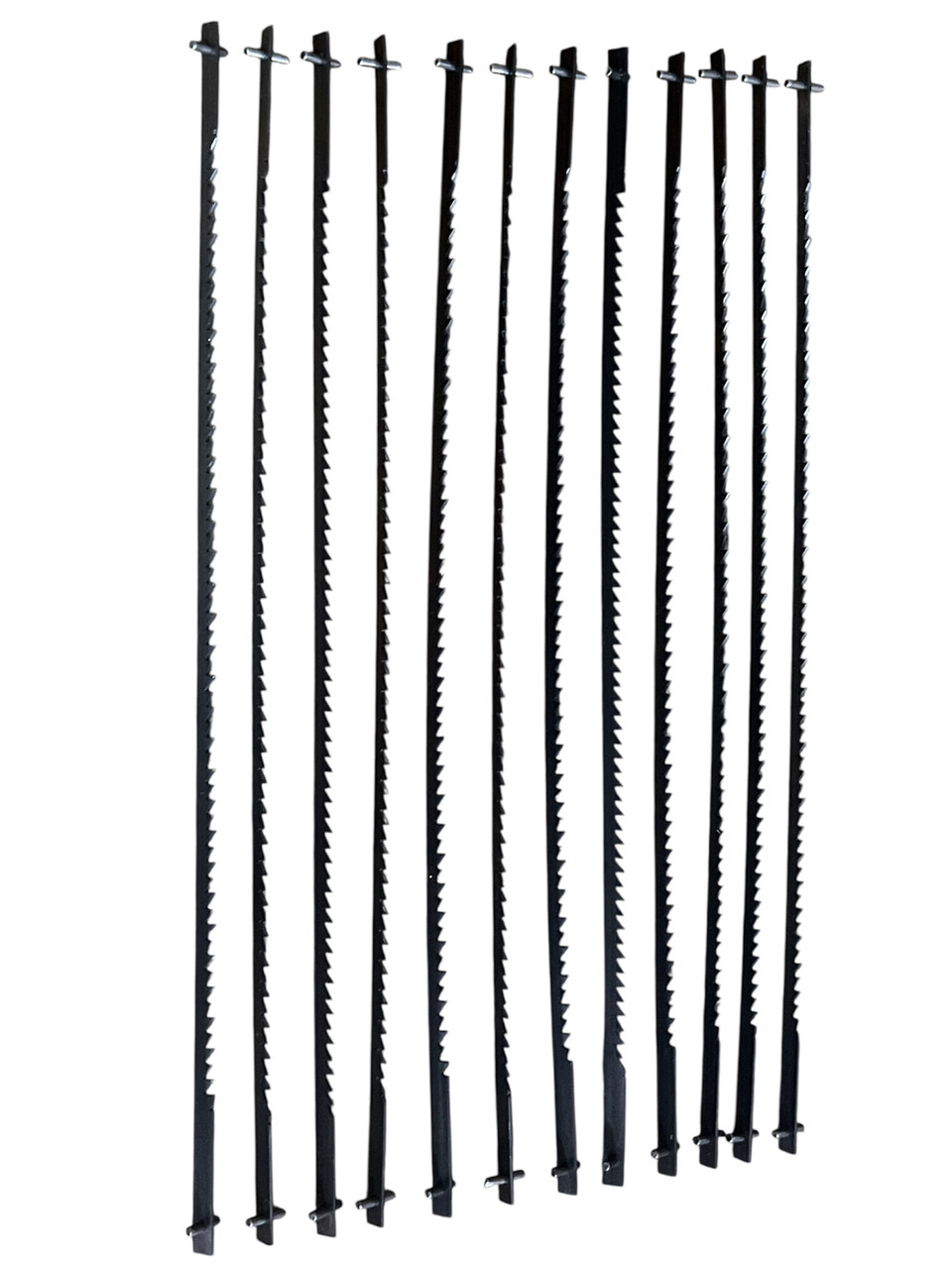 Стандартні пилки, довжина 127 мм, зі штифтовим кріпленням.Середній зуб (15 зубів на 25 мм). Для твердих та м'яких порід дерева та матеріалів середньої щільності. 127 х 1,86 х 0,24 мм 12 шт.